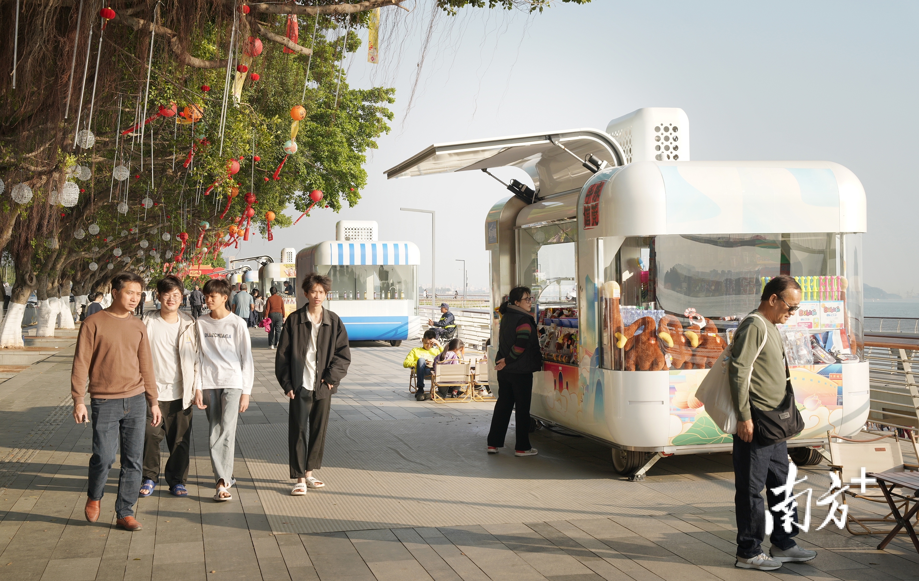 在海战博物馆前的广场上,滨海湾正打造一个规模更大的“湾畔小食圩”。该区域设计面积约890平方米,计划集结约68家特色摊位,汇聚国潮点心、本土小吃等多元美食,与现有的“海韵雅集”餐车互为补充,将在年后与大家见面。