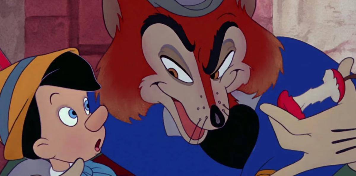 影片大半剧情里,真正的反派其实是狐狸诚实约翰。他两次诱骗匹诺曹偏离正道,这是这只小木偶成长路上的最大考验。