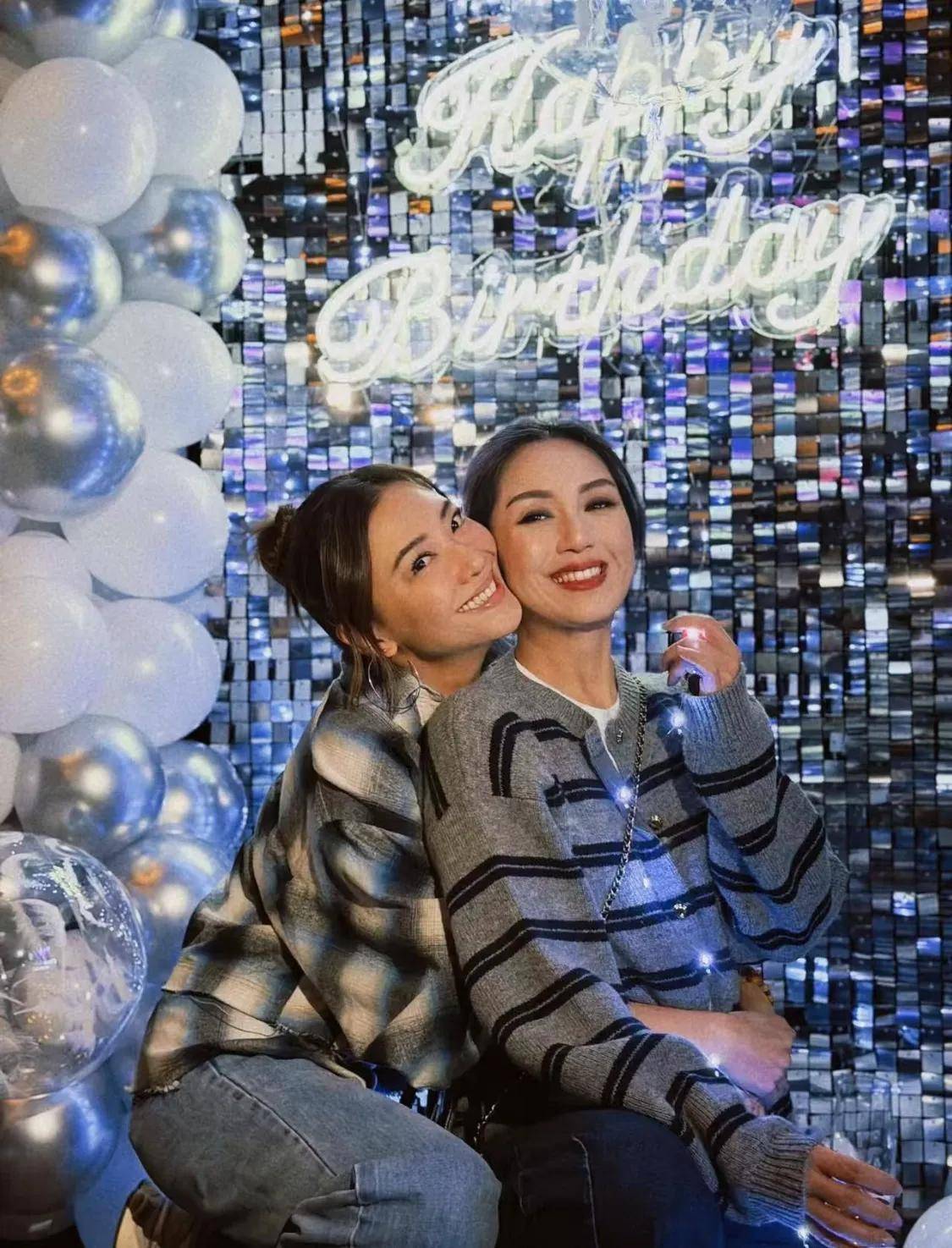 应采儿也给杨千嬅庆生了,应采儿身穿蓝灰色格纹衬衣,杨千嬅穿着灰色格纹羊毛衫,应采儿抱着杨千嬅,两人贴脸拍照很亲密。应采儿比杨千嬅小10岁,但感觉她俩都很年轻,一点年龄差也没有。
